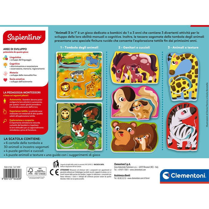 3. Animali e texture: propone grandi tessere sagomate di animali, con tasselli a incastro per ricostruirne la pelliccia.