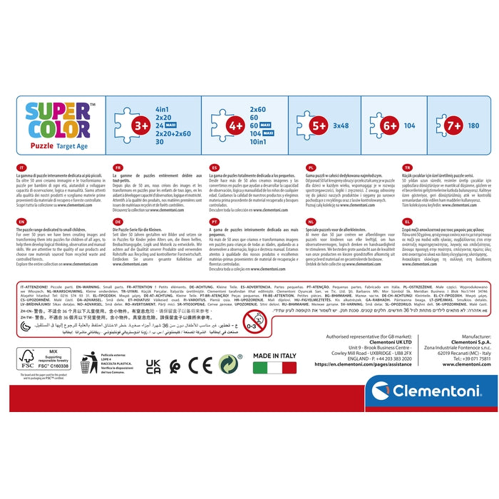 Da sempre sensibile al problema dell'ecologia, la Clementoni fa un largo uso di materiali riciclati, evitando l'impiego di componenti inquinanti. Made in Italy.