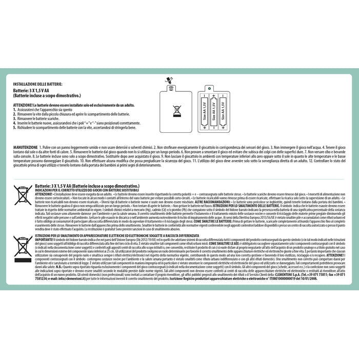Il prodotto è conforme alla pertinente normativa comunitaria di armonizzazione: Direttiva 2009/48/CE. Attenersi a quanto riportato su scatola e istruzioni per il corretto e sicuro utilizzo del gioco.