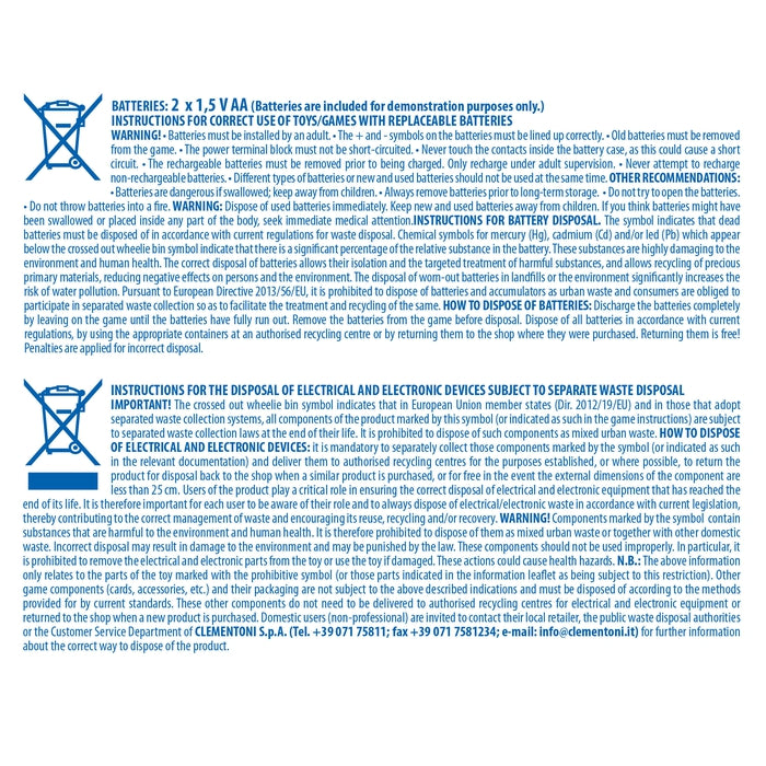 Il prodotto è conforme alla pertinente normativa comunitaria di armonizzazione: Direttiva 2009/48/CE. Attenersi a quanto riportato su scatola e istruzioni per il corretto e sicuro utilizzo del gioco.