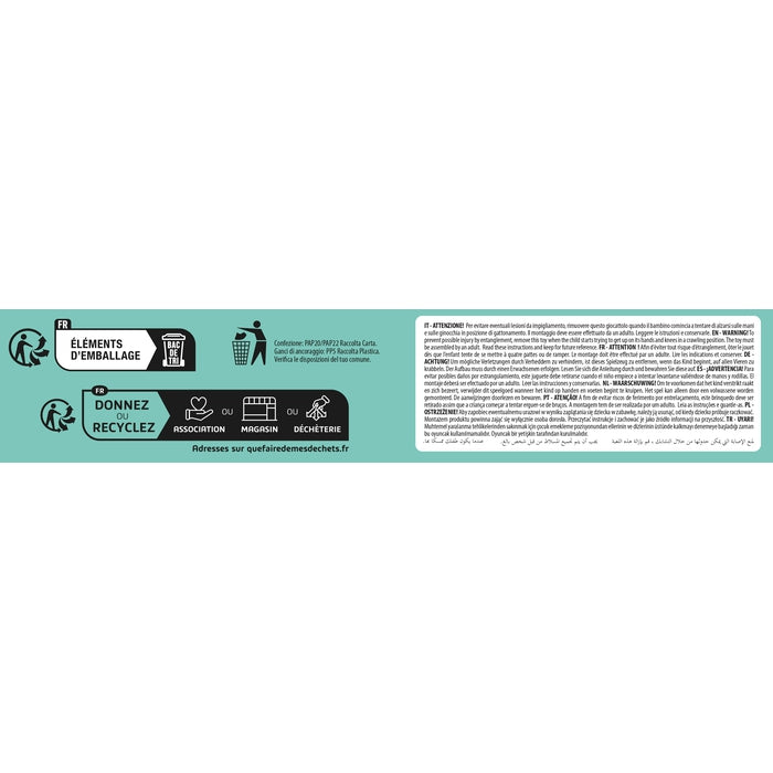 Un colorato volante da passeggino ricco di attività meccaniche, per portare il divertimento ovunque.