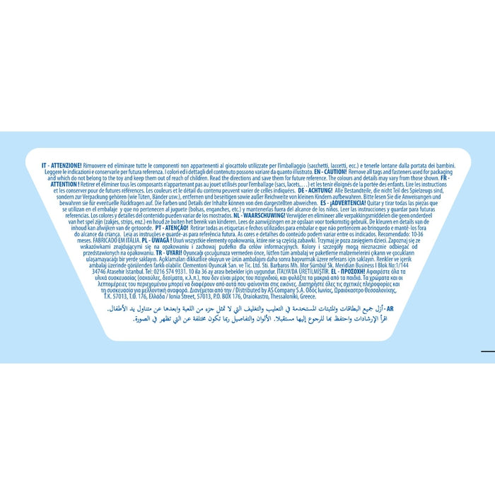 Il prodotto è conforme alla pertinente normativa comunitaria di armonizzazione: Direttiva 2009/48/CE. Attenersi a quanto riportato su scatola e istruzioni per il corretto e sicuro utilizzo del gioco.