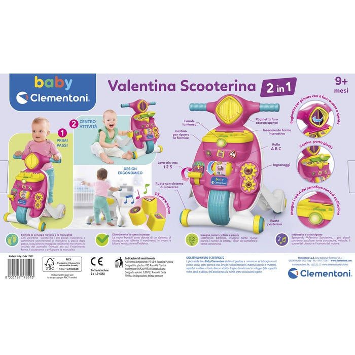 Scooter 2in1: Un originale Primi Passi, ma anche un Centro Attività Meccanico ed Elettronico per imparare lettere e numeri e tanti altri contenuti educativi, sviluppando coordinazione e manualità.