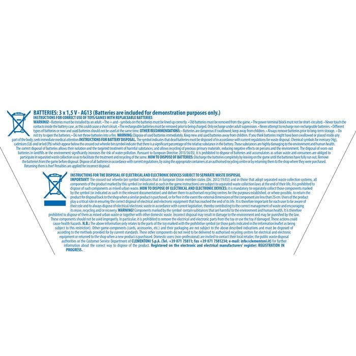 Il prodotto è conforme alla pertinente normativa comunitaria di armonizzazione: Direttiva 2009/48/CE. Attenersi a quanto riportato su scatola e istruzioni per il corretto e sicuro utilizzo del gioco.