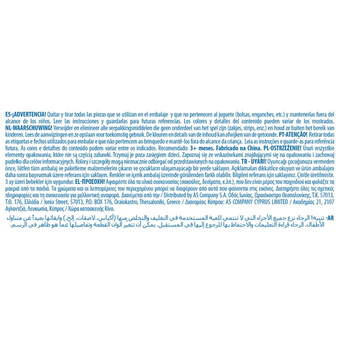 Il prodotto è conforme alla pertinente normativa comunitaria di armonizzazione: Direttiva 2009/48/CE. Attenersi a quanto riportato su scatola e istruzioni per il corretto e sicuro utilizzo del gioco.