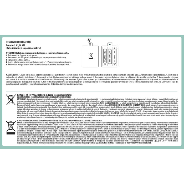Il prodotto è conforme alla pertinente normativa comunitaria di armonizzazione: Direttiva 2009/48/CE. Attenersi a quanto riportato su scatola e istruzioni per il corretto e sicuro utilizzo del gioco.