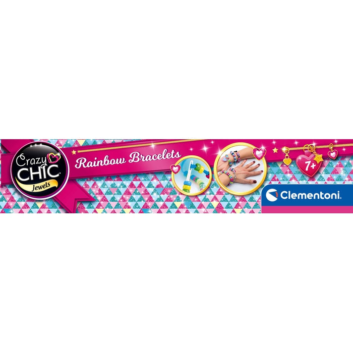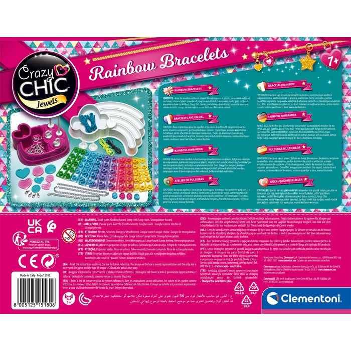 Il gioco contiene 100 anellini in plastica colorata, altri con finitura metallica, cordini elastici e catenine da assemblare per creare bracciali glamour!