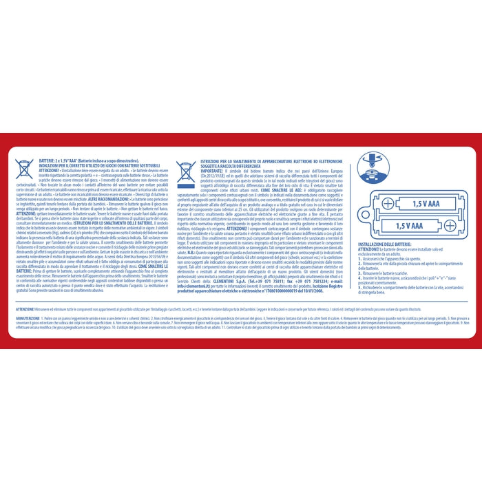 Il prodotto è conforme alla pertinente normativa comunitaria di armonizzazione: Direttiva 2009/48/CE. Attenersi a quanto riportato su scatola e istruzioni per il corretto e sicuro utilizzo del gioco.