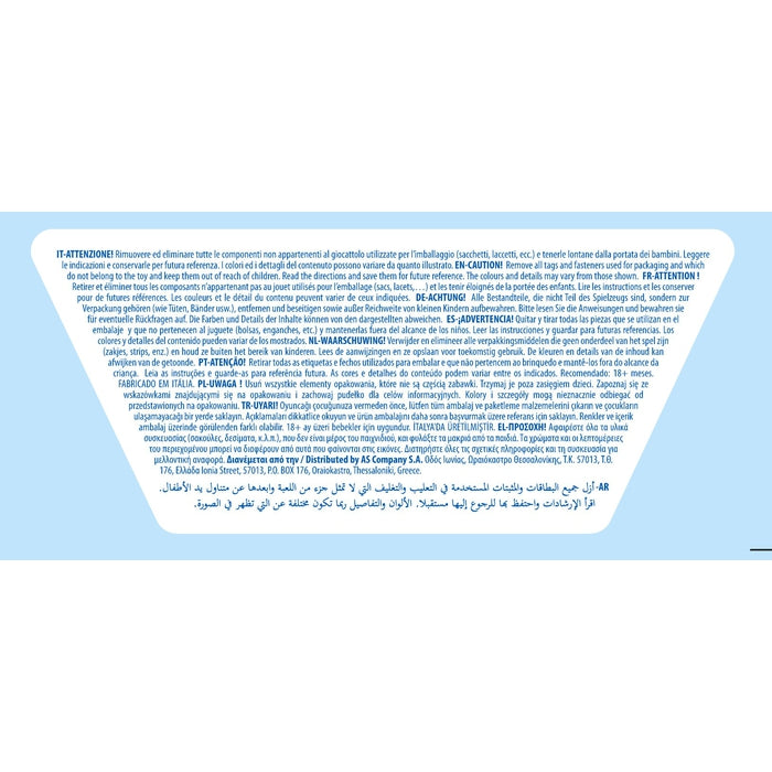 Il prodotto è conforme alla pertinente normativa comunitaria di armonizzazione: Direttiva 2009/48/CE. Attenersi a quanto riportato su scatola e istruzioni per il corretto e sicuro utilizzo del gioco.