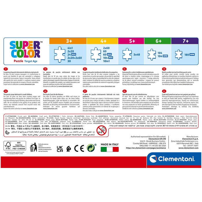 Da sempre sensibile al problema dell'ecologia, la Clementoni fa un largo uso di materiali riciclati, evitando l'impiego di componenti inquinanti. Made in Italy.