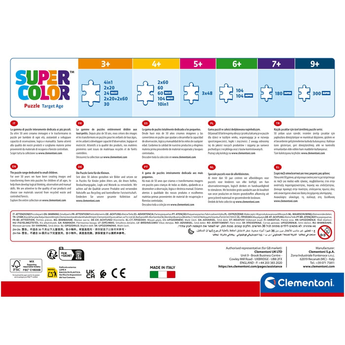 Da sempre sensibile al problema dell'ecologia, la Clementoni fa un largo uso di materiali riciclati, evitando l'impiego di componenti inquinanti. Made in Italy.