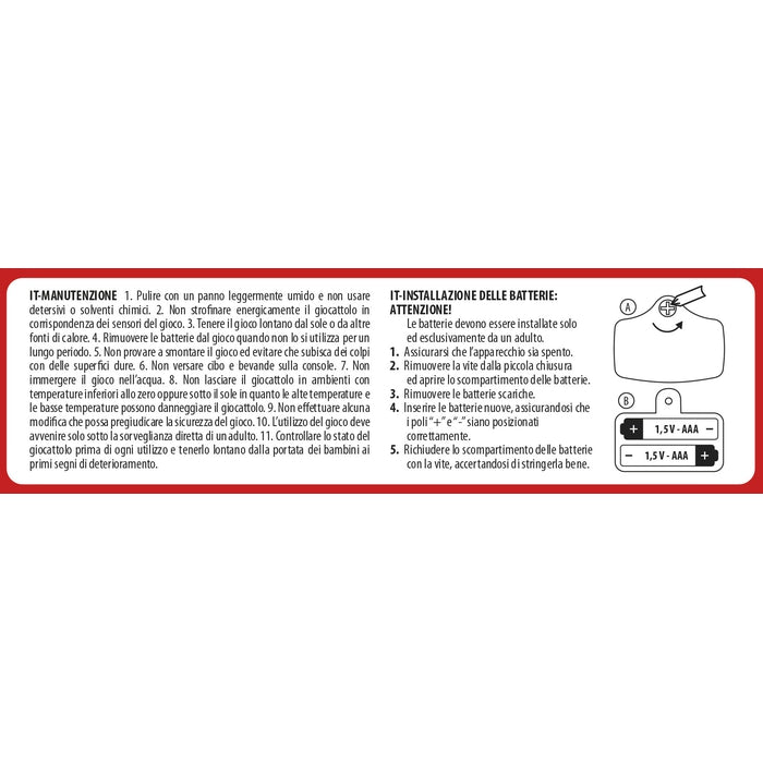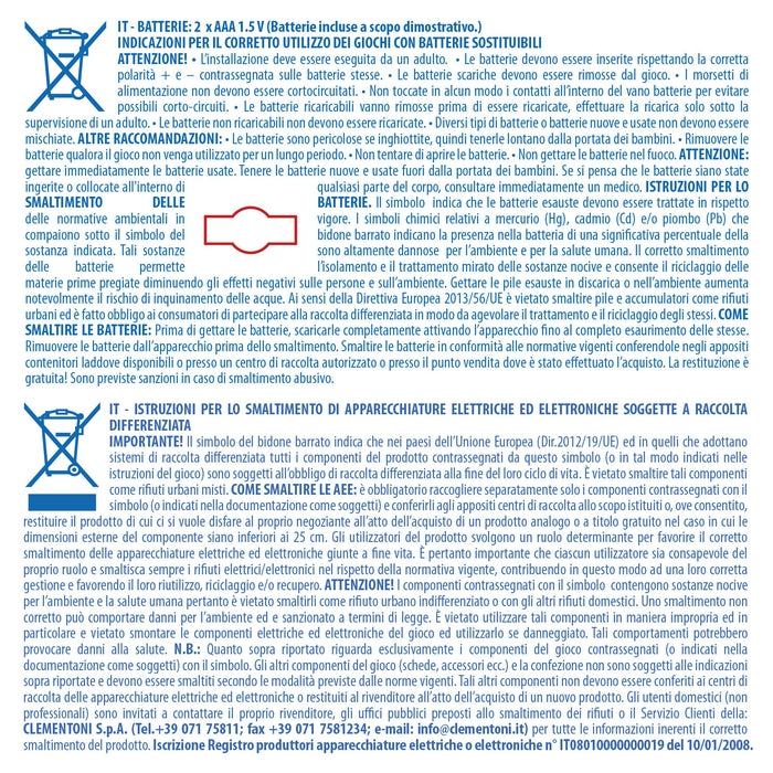 Il prodotto è conforme alla pertinente normativa comunitaria di armonizzazione: Direttiva 2009/48/CE. Attenersi a quanto riportato su scatola e istruzioni per il corretto e sicuro utilizzo del gioco.